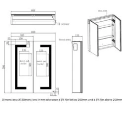 RAK Ceramics Sagittarius LED Illuminated Mirrored Bluetooth Cabinet 700x600mm – RAKSAG5002