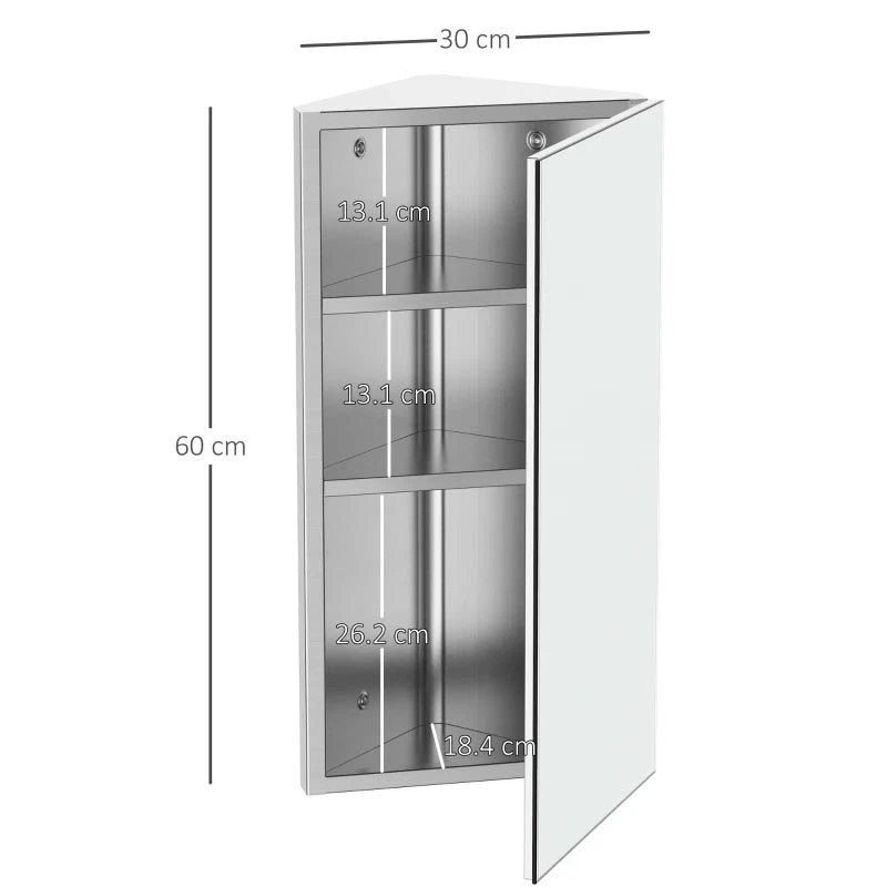 Experience the convenience and durability of the HOMCOM Stainless Steel Wall Mounted Corner Mirror Storage Cabinet. Order yours today and discover the perfect blend of style, functionality, and space-saving design.