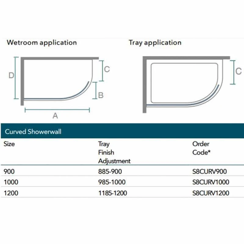 Merlyn 8 Series Curved Wet Room Glass Panel 1000mm – Glass – S8CURV1000