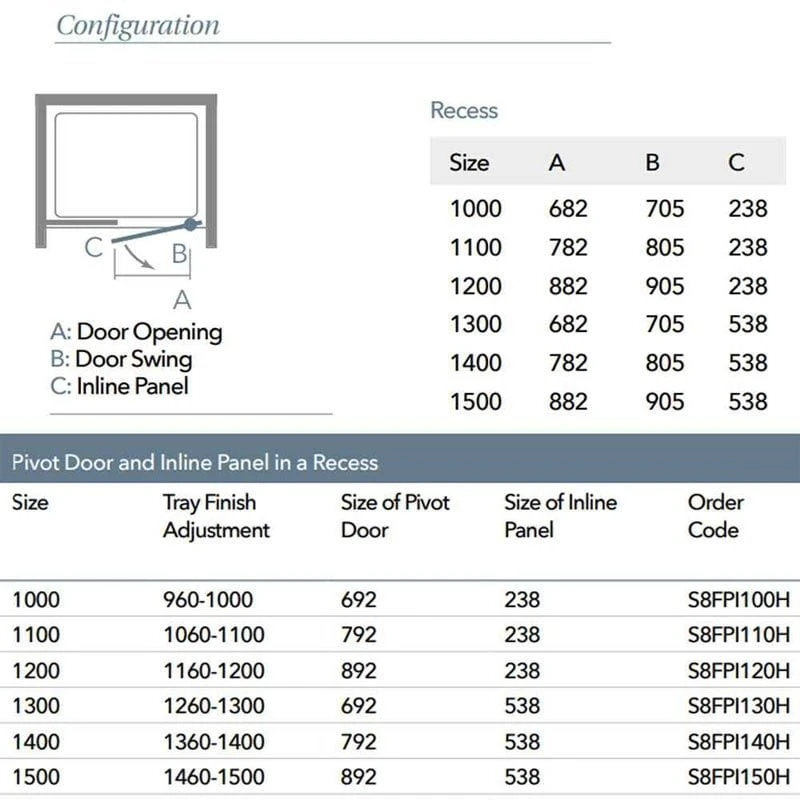 Merlyn 8 Series Frameless Pivot Shower Door & Inline Panel 1300mm – S8FPI1303H