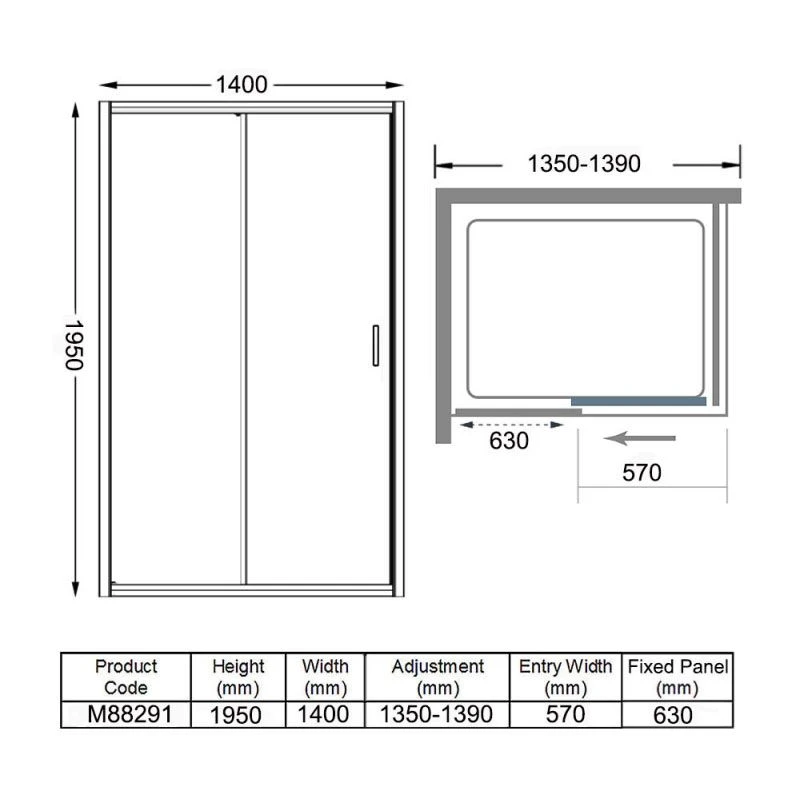 Merlyn 8 Series Sliding Shower Door 1400mm – M88291