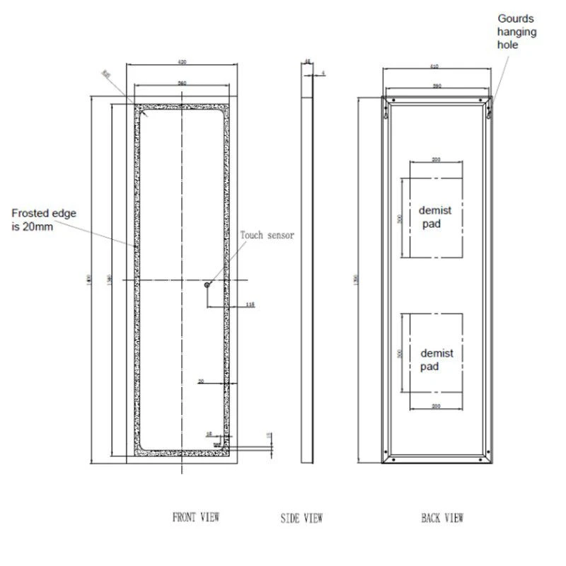 RAK Aquarius LED Illuminated Tall Dress Mirror With Demister And Touch Sensor Switch 1400x420mm – RAKAQU5001