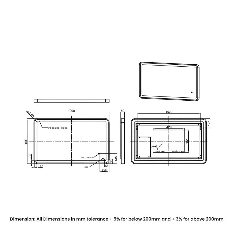 RAK Ceramics Picture Soft 600 x 1000mm LED Mirror – Chrome – RAKPICSFCP5003 – Details