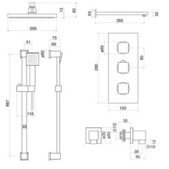 Trisen Zacha Chrome Square Exposed Adjustable Thermo Shower – TSS100